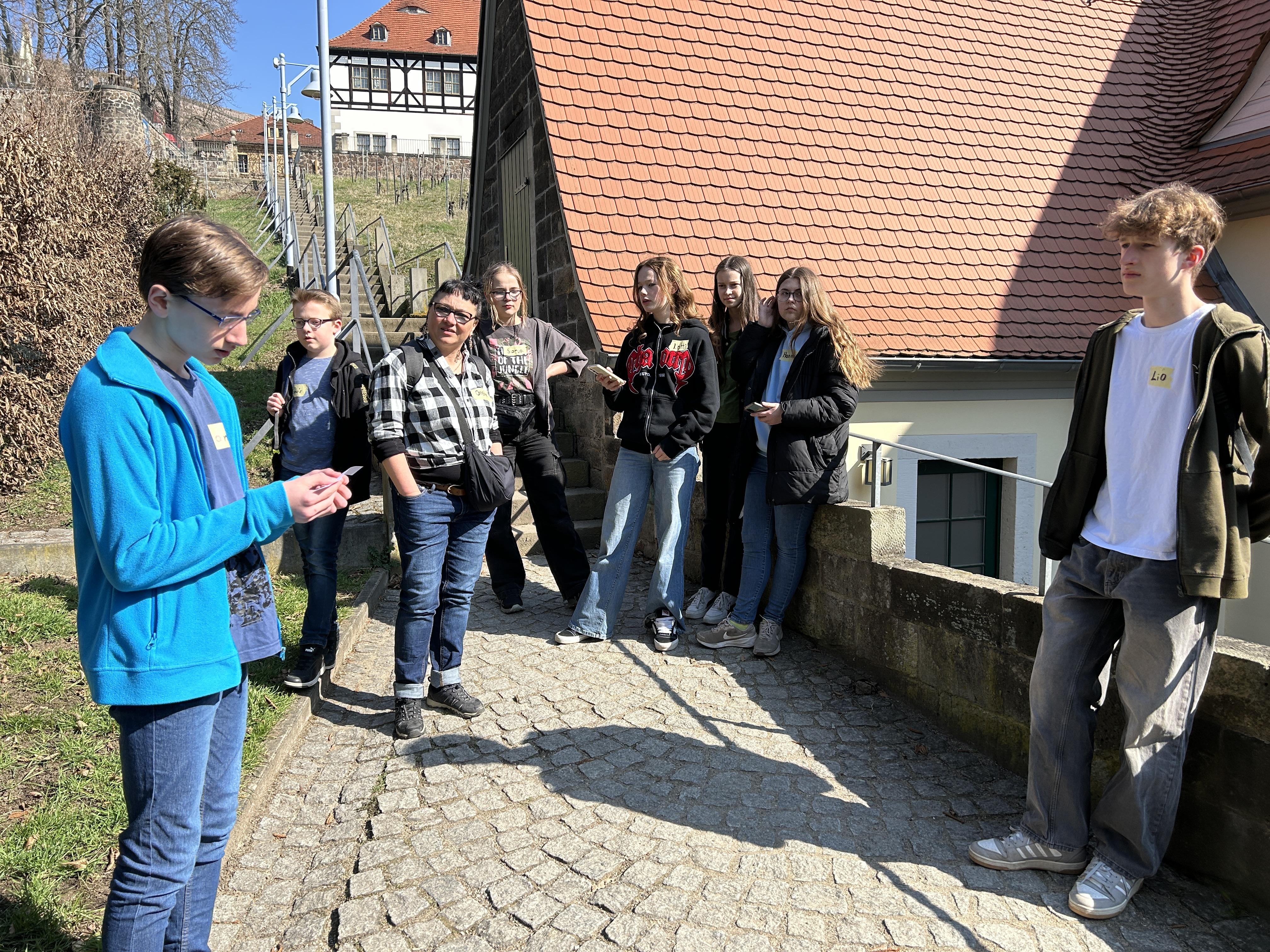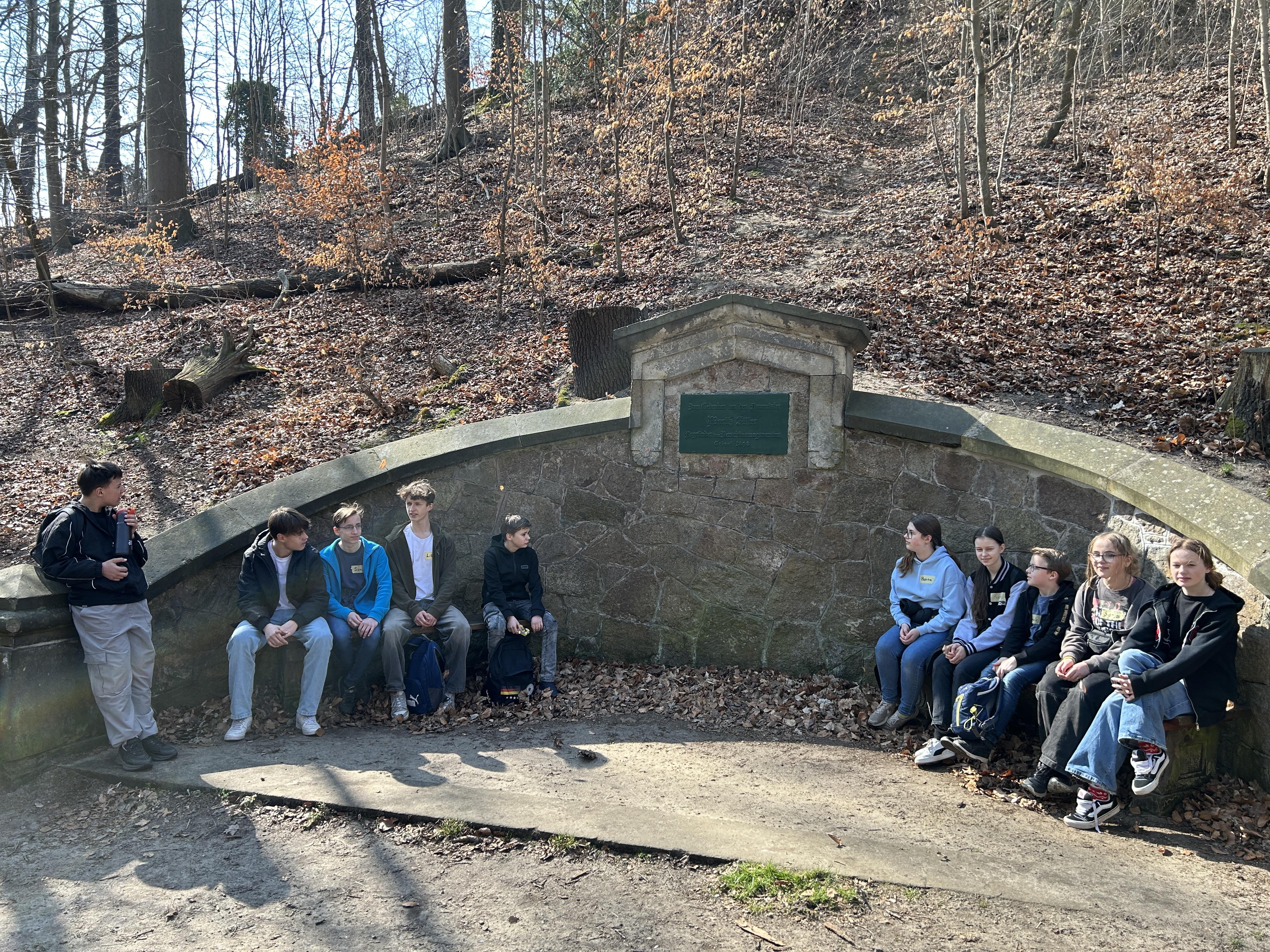 Es ging unteranderem zu den Landesbühnen Sachsen, einem Theater in Radebeul; auf die Weinberge, wo das Spitzhaus steht, dort mussten wir die Treppenstufen zählen, das war sehr anstrengend… und es ging zu einem Denkmal das Moritz Ziller gewidmet wurde.